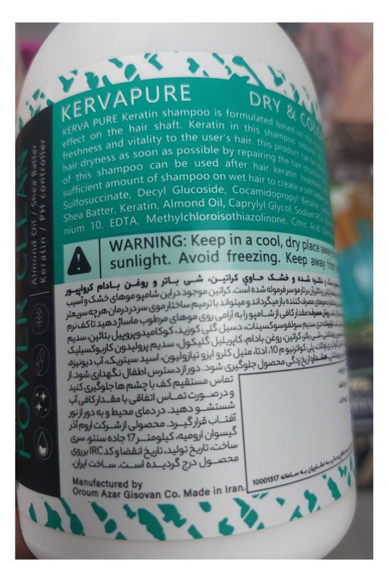شامپو۵۰۰ میلی مناسب موهای رنگ و دکلره شده وخشک حاوی کراتین شی باتر و روغن بادام کروا پیور