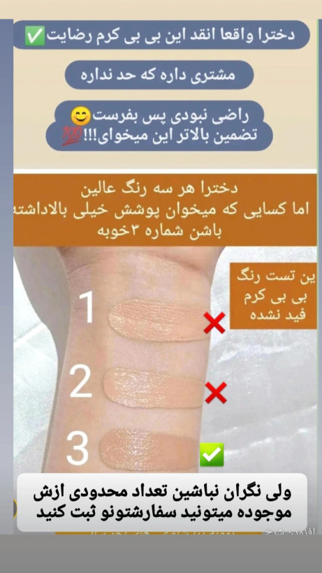 بی بی کرم یه ترکیبی ارایشی ودرمانی اس پی اف ۴۰ دارهداخلش ابرسان کانسیلر ضدافتاب و کرمپودره اصلا ماسیده نمیشه فاقد چربی کاور بالایی داره بشدت سبکه مناسب برا انواع پوستهاس